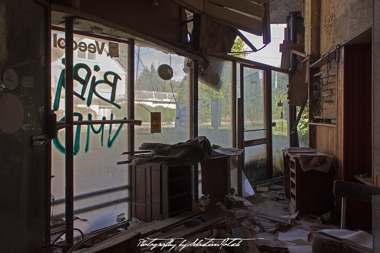 Lost places are most often troubled by vandalism, but the remote location has saved this old service station from the worst. There are only some windows broken, few graffiti and most of the destruction we found was likely due to general decay, weather or storm events. Documents have been taken out of drawers, various things have been moved around and many items have most likely been stolen over time. According to the urban explorer code of leaving only foot prints and taking only pictures we kept our hands in the pockets.