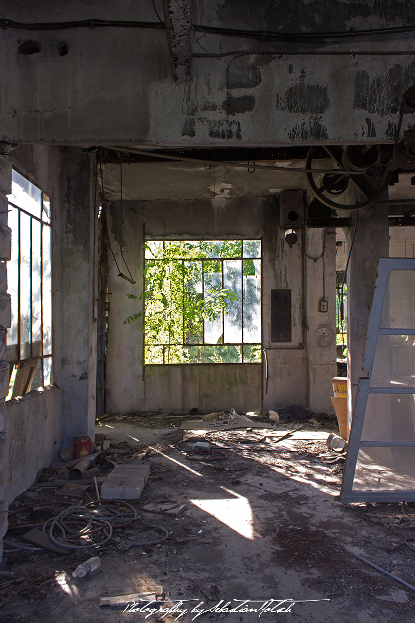 The building itself still is solid for the most part and slowly falling apart in some areas. We go upstairs but have to tread carefully as part of the staircase and upper floor had partially collapsed already due to the leaking roof.