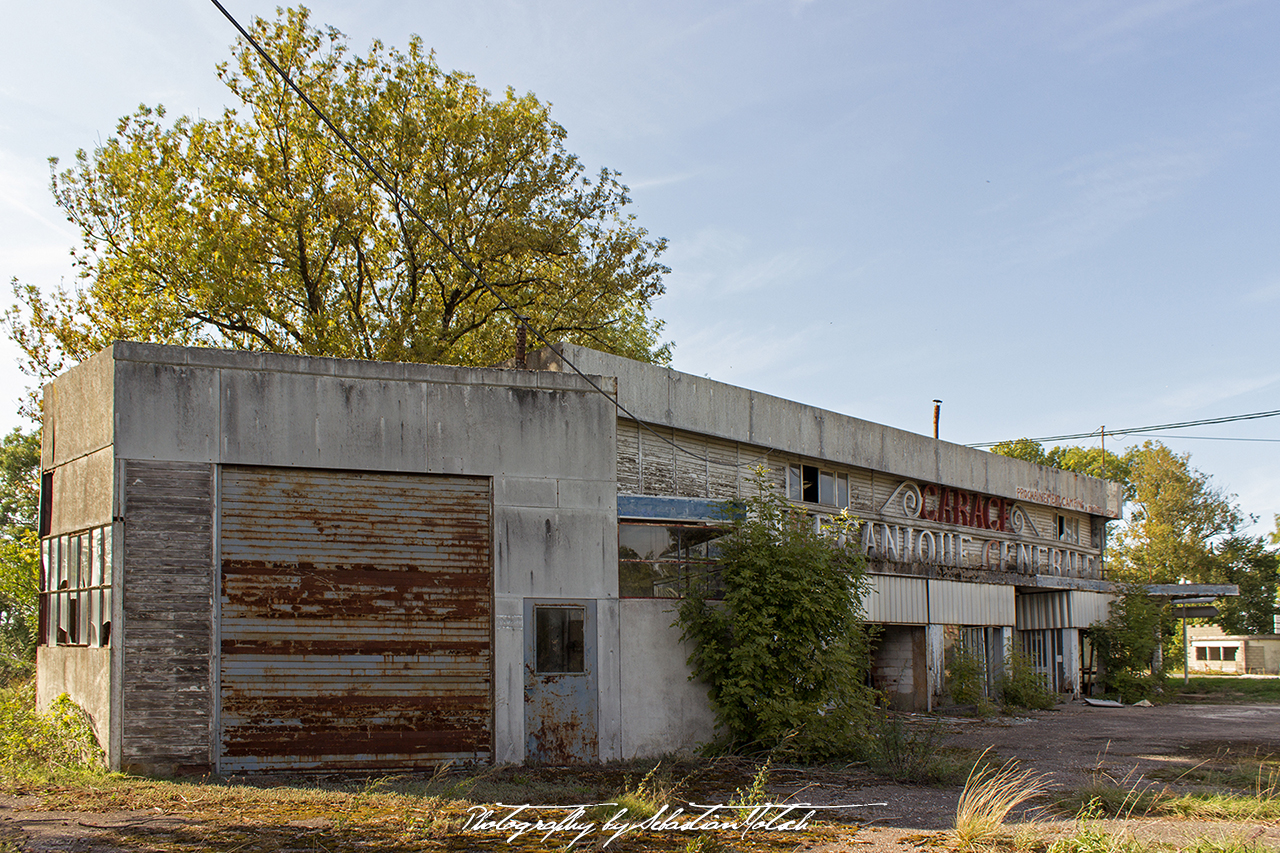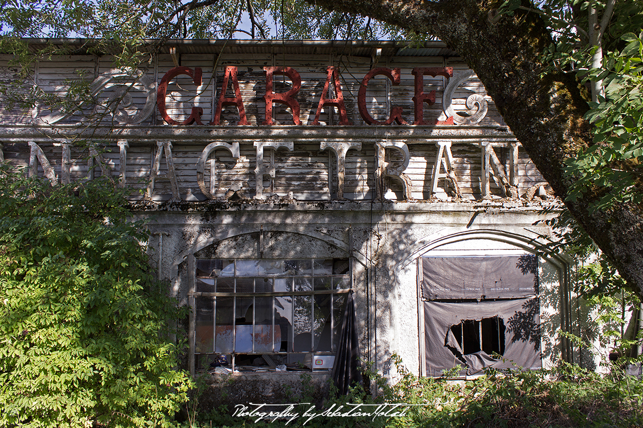 Interesting name I think, while accelerating to make use of a gap in traffic. As I have to wait for my friends in the second van anyway, I pull over and stop. A short break never hurts and provides a welcome possibility to stretch the legs. Taking a closer look at the building, I notice more letters painted on the wall. Painted? No, first impression fooled me here. The letters are not painted, but artfully crafted three-dimensionally: GARAGE, DEPANNAGE, TRAN…