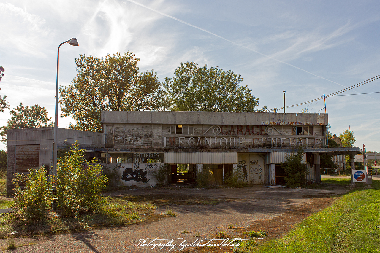The small petrol station shop facing the N19 (E54) is more or less intact and looking out of the window makes it easy to imagine generations of customers in new Berliet, Citroën, Peugeot, Renault, Simca and other French vehicles stopping for Essence and Diesel decades ago.