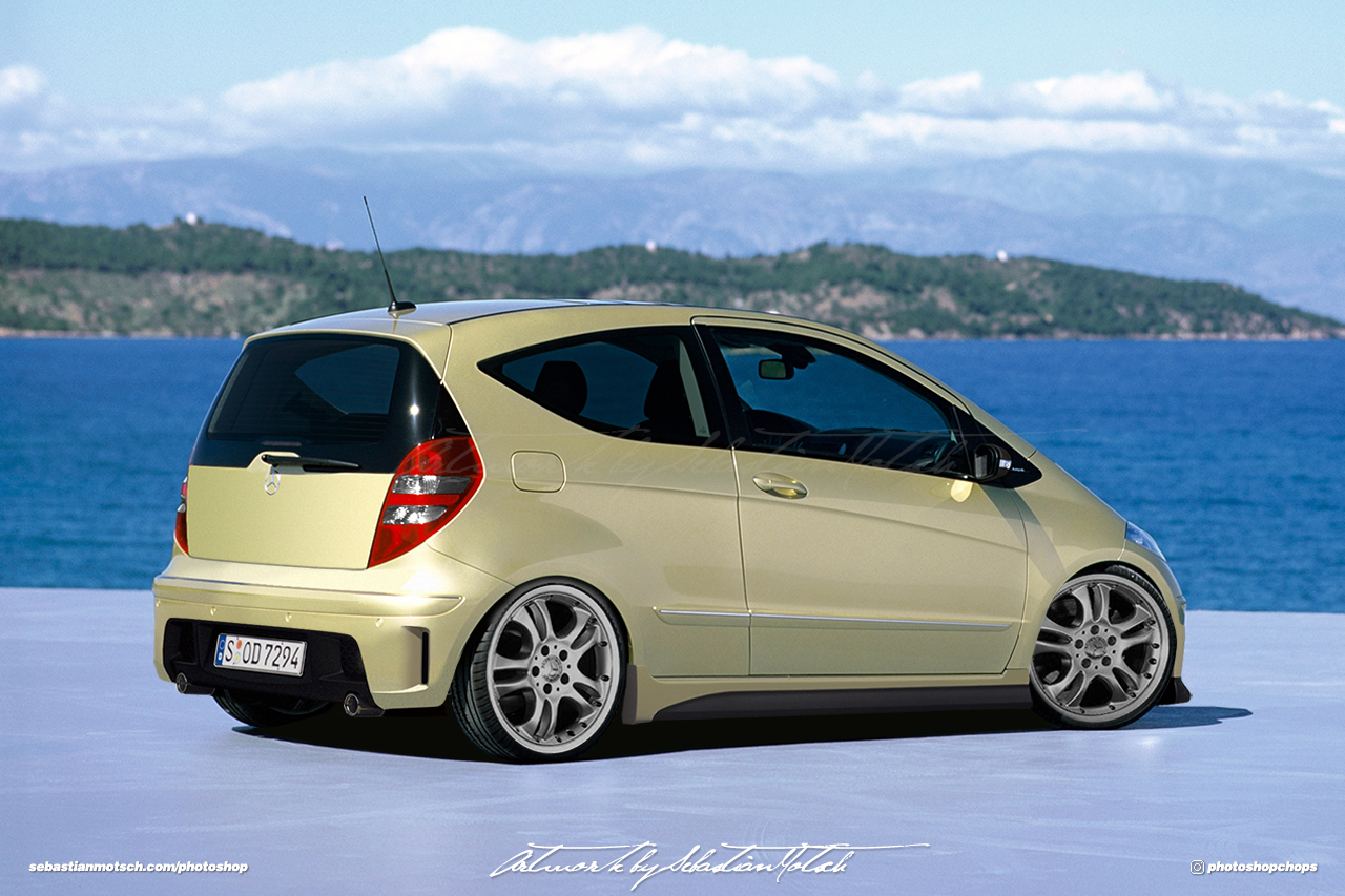 Modifying an A-Class Mercedes-Benz, am I insane? Well… kind of, yes. Few people would actually attempt do this in reality – but by just moving a couple of pixels around, the only thing wasted was time while having fun, not hard cash. I designed a bodykit for the W169, added larger wheels and think it does look better now.