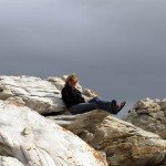 We then bought some supplies in the local superette and drove to Hermanus. To my delight, we traveled on the unpaved roads via Elim. The weather wasn’t really nice the whole day: gusting wind and some rain. We figured that we should try to fight it by buying ice-cream in Hermanus. The beach dassie you see in one of the pictures also wanted some, but fortunately there was a 2m gap between the tree and the wall we sat on.